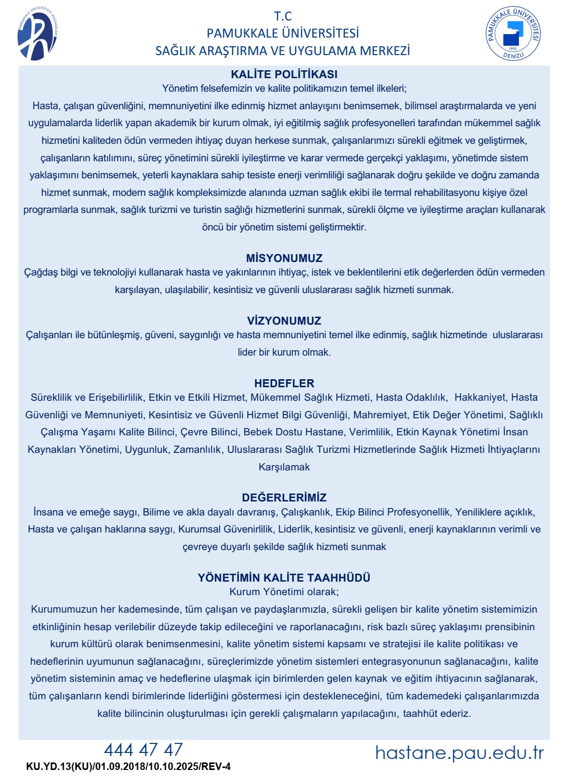 Kalite Politikası, Misyon ve Vizyon